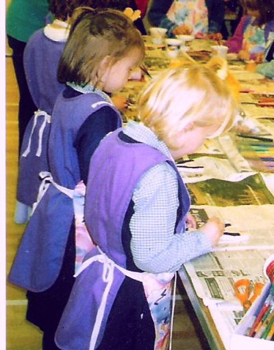 on their kilts. Coralie then helped us to put string through their arms