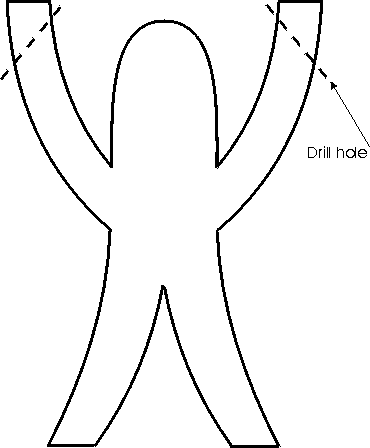figures had been cut out I drilled holes at roughly 45º in the arms, as shown