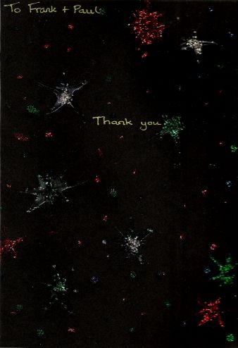We made this card for Frank and Paul who had a barbecue and fireworks party for us and the Brownies.